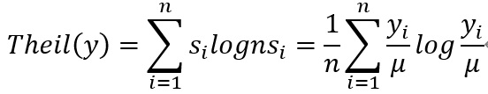 としています。タイル指数の特徴は、指数を人口属性などのサブグループに分解することができることで、数式としては、