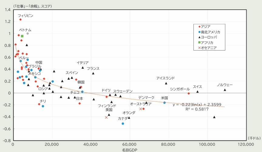 図5.一人あたり名目GDPと(余暇よりも)仕事を優先する度合いの指標の関係