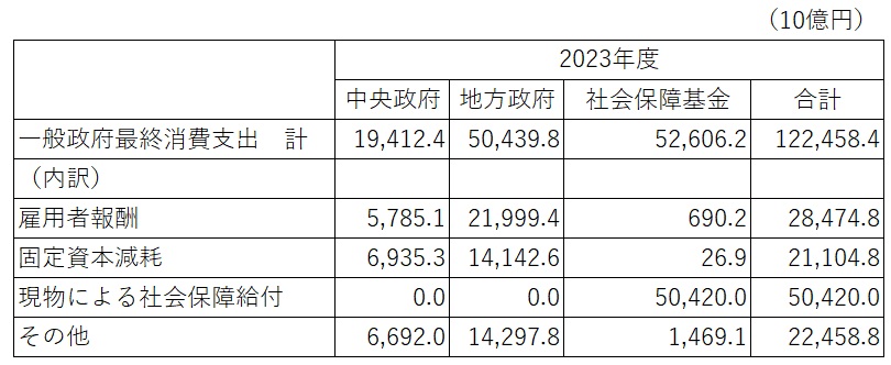 図表1.一般政府の最終消費とその内訳(2023年度)