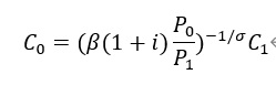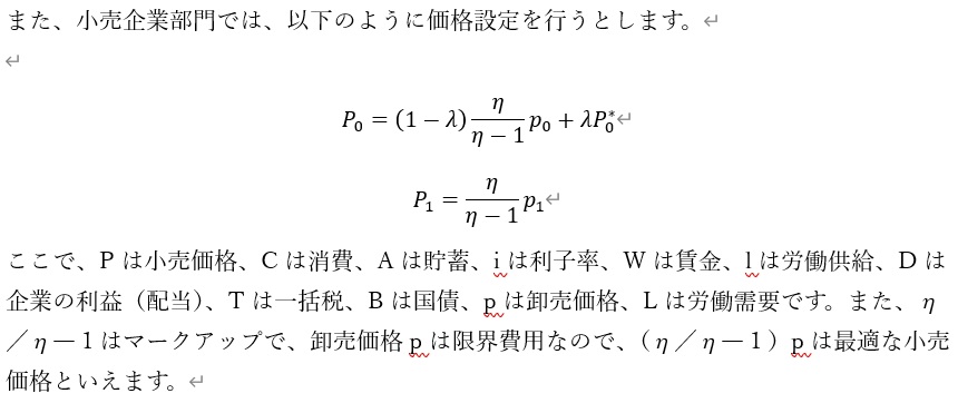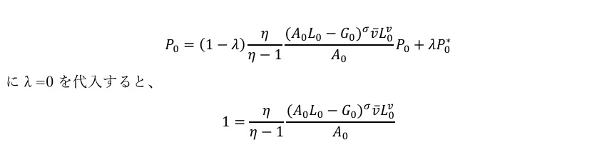 ただ、今回のモデルは価格の硬直性があると考えているため、0期については、完全に最適な価格とはならず、一定程度(1-λ)だけ反映されるとしています(一方で、1期目は最終期なので、価格は最適なものが反映されるとしています)。