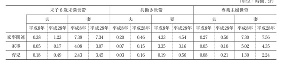 図1. 夫婦と子供の世帯の夫・妻の家事関連時間(社会生活基本調査)